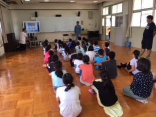 子どもたちは、田植えの順序・コツを教えていただきました。