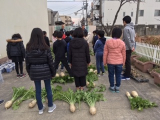 4年生が9月に種をまき、葉につく虫をとり、雑草をぬき、みんなで丹精こめて育ててきました。