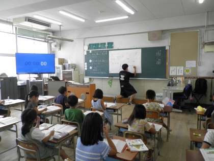 2年生の算数科の様子です。問題を見て、前時で学習したひっ算との違いに気づき「2回のくり上がりがあるけど、できる!」と意気込んで取り組んでいました。計算の仕方を言葉で上手に説明していました。