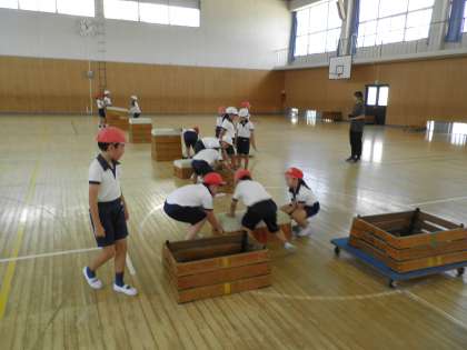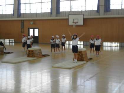 3年生の体育科の様子です。友だちと協力して準備をし、学習環境を整えていました。みんな、怪我をしないように周りを気にしながら跳んでいました。着地のポーズもとてもかっこよかったです。