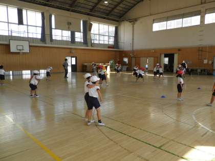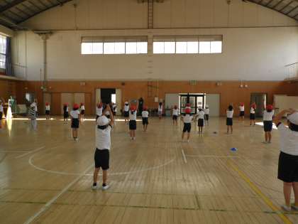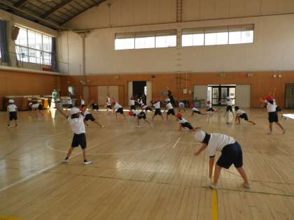 1年生の団体演技の練習です。1年生が一生懸命に踊る姿はとてもかわいらしいです。練習がはじまって間もないですが、振付をだいぶ覚えているようです。本番が楽しみです。