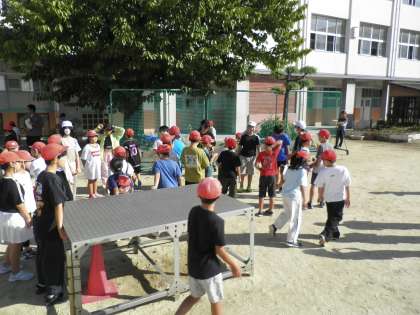 今朝のたてわり遊びの様子です。日陰は少し肌寒さを感じるほどでしたが、子どもたちは元気よく班での遊びを楽しんでいました。遊んだ後は、6年生が中心となり振り返りを行っていました。