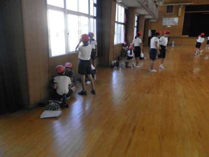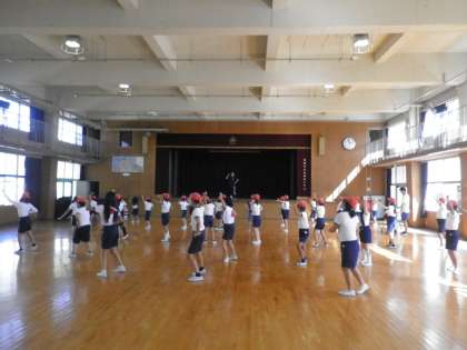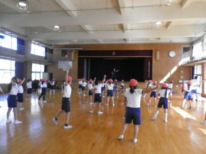 4年生が団体演技の練習を行っていました。みんな、先生のお手本をしっかり見て、踊っていました。かっこいいステップも見どころのひとつです。随分、涼しくなったとはいえ、体を動かすと暑さを感じます。水分補給も忘れずに練習を頑張っています。