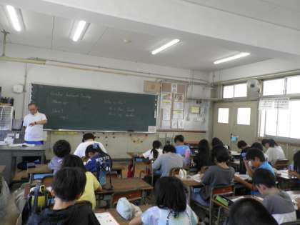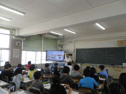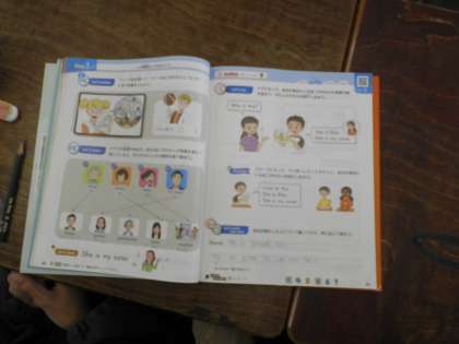 5年生の英語の授業です。デジタル教科書から流れてくる音声をヒアリングして、登場人物の情報を聞き取っていました。ネイティブな音声を聞き取るのには苦労していたようですが、頑張っていました。