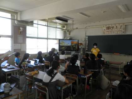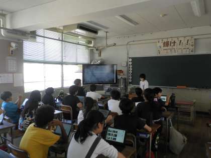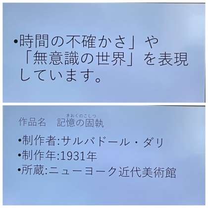 6年生の図画工作科の授業です。PowerPointを作成し、自分が紹介したい名画について発表しました。作者名や作品を通して、作者が何を伝えたかったのかなど、聞く側が「なるほど〜」と思えるような発表でした。