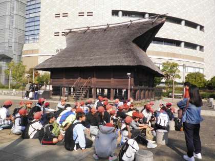 今日は6年生が大阪城周辺へ大阪市探検へ行ってきました。歴史博物館前にある高床式倉庫を見学した後、大阪城周辺に残る戦跡をオリエンテーリング形式で見学していきました。天守閣にものぼりました。