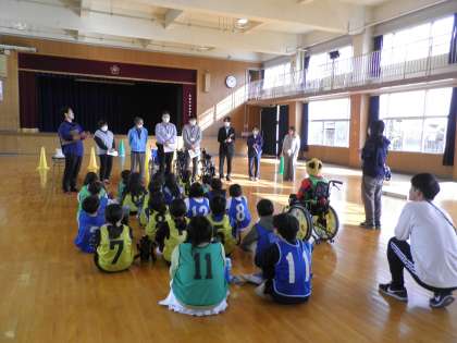 本日は区役所や地域の方にお越しいただき、車いす体験を実施していただきました。はじめに車いすに乗っている人の気持ちを考えるため「思いやりワーク」を行いました。その後、車いすの押し方や操作の仕方を体験しました。