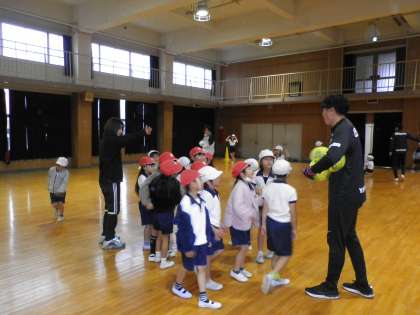 セレッソ大阪のジュニアコーチの方々に準備運動や基礎練習を指導していただき、「夢授業」を行いました。試合は各学年グループを作り、コーチに挑みました。担任も参加し、大盛り上がりでした。