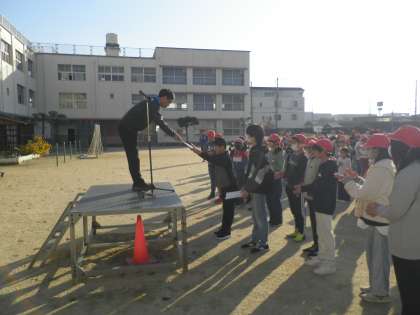 今朝の朝会では「東住吉区小中学生人権標語コンクール 最優秀賞」と「タグラグビー大阪府予選大会 優勝と第3位」の表彰がありました。校長先生からは全力で取り組むことの大切さとそれを支えるのは仲間であるとの話がありました。図書委員会からは「読書ビンゴ」のお知らせがありました。