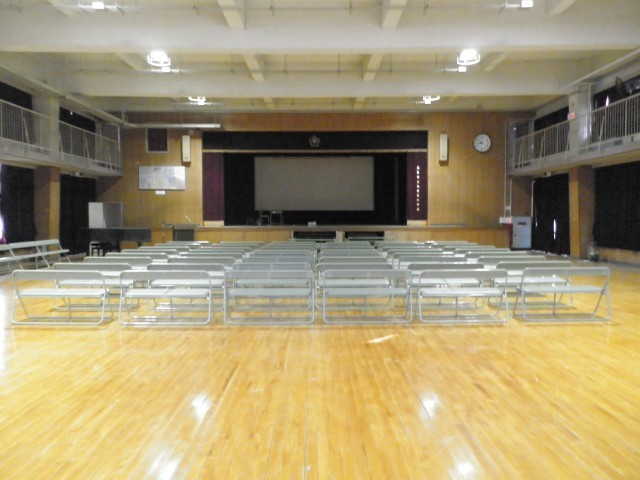 本日、14:30より開始する入学説明会の会場準備を5年生が行いました。友達と協力して、長いすや長机を運びました。長いすを縦や横を見ながら、きれいに整列させ、会場の準備が整いました。