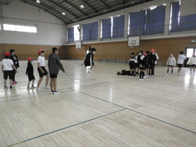 6年生の体育科の様子です。今日は、気温が低く、冷え込みます。準備運動として「長なわを使った八の字跳び」に取り組んでいました。できる限り途切れないように頑張っていましたが…中々、難しいようです。気持ちをひとつに、集中力を高めて、たくさん跳べるようになってほしいですね。