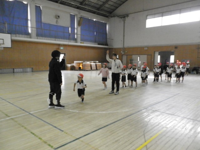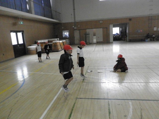 1年生の体育科の様子です。なわとびカードの種目に沿って、短なわの練習をしていました。体育館をのぞきにいくと「先生、見てー。」と自慢げにそれぞれの技を披露してくれました。長なわでは、どうすれば続けて跳べるのか考え、できるだけ長く続くように挑戦していました。