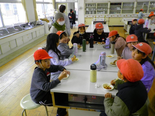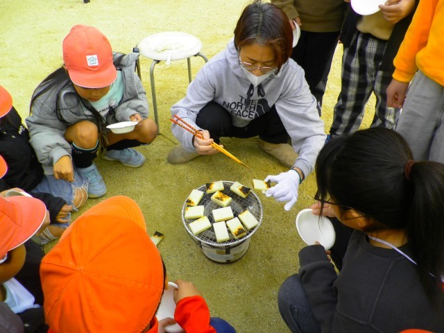 3年生の「七輪体験」の様子です。「むかしのくらし」の学習の発展として「七輪」で「おもち」を焼く体験をしました。地域の見守り隊の方々の協力も得て、実施しました。子どもたちは、「おもち」が膨れていく様子に歓声を上げながら、焼けていく「おもち」を見つめていました。焼けた「おもち」は、おいしくいただきました。