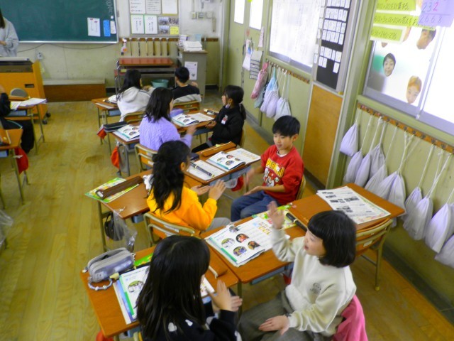 3年生の様子です。「森の子もり歌」ではリコーダーと歌のパートに分かれ、きれいな演奏と元気な声が廊下にまで響きわたっていました。「十五夜さんのもちつき」では、ペアになり手遊びをしながら、元気な声で歌えていました。また「ふじ山」は元気だけでなく、抑揚をつけたきれいな歌声となっていました。