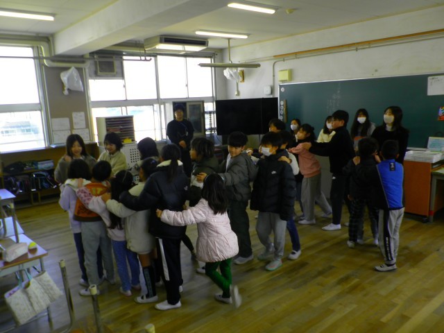 今朝は、今年度ラストのたてわり遊びがありました。気温は少し低く感じましたが、天気は晴天でした。1年間、一緒に活動してきた班のメンバーと最後の遊びを楽しみました。6年生は、あと数日で卒業してしまいます。これまで班をまとめてくれた感謝の気持ちをこめて、最後のたてわり遊びを終えました。