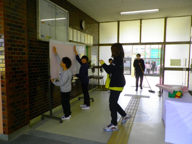 今日の6時間目は、5年生と教職員で卒業式の準備を行いました。