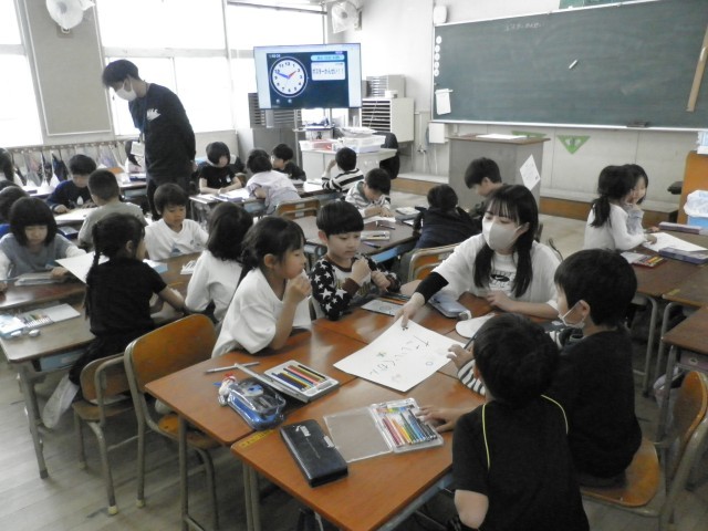 2年生の学習の様子です。24日(金)に予定されている1年生との「学校たんけん」にむけて準備をしていました。1年生にわかりやすいように様々な部屋に掲示するポスターを作成していました。友だちと協力して、たくさんの色をつかって1年生が楽しくたんけんできるように工夫をしてポスターを作成していました。