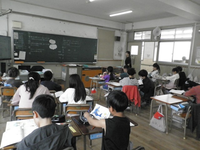 4年生の算数科では、習熟度別の学習を進めています。2クラスを3つのグループに編成しました。今日は、25億を10倍、1/10するといくつになるのか?という問題に取り組んでいました。見通しを立て、学習を進めた「まとめ」として「10倍すると位が1桁上がる、1/10すると位は1桁ずつ下がる」ことに気づくことができました。
