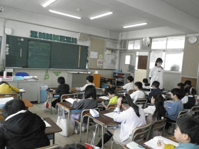 2年生の算数科の様子です。今日は「32+4」のひっ算のしかたを考えていました。子どもたちからは「位をそろえる」といった見通しが出されました。中には、位をそろえることはできていますが、十の位に0をかく子もいました。「十の位の0はゆうれいの0~」と声をそろえて、十の位の0は書かなくて良いことも学びました。