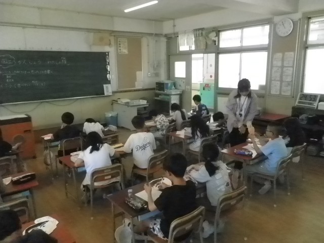 3年生の図工の様子です。完成した「わたしの顔」の鑑賞会を行っていました。友だちの作品の良いところを見つけ、感じたことをワークシートに記入していました。色づかいや形のバランスなど、それぞれが良いところを発見していました。