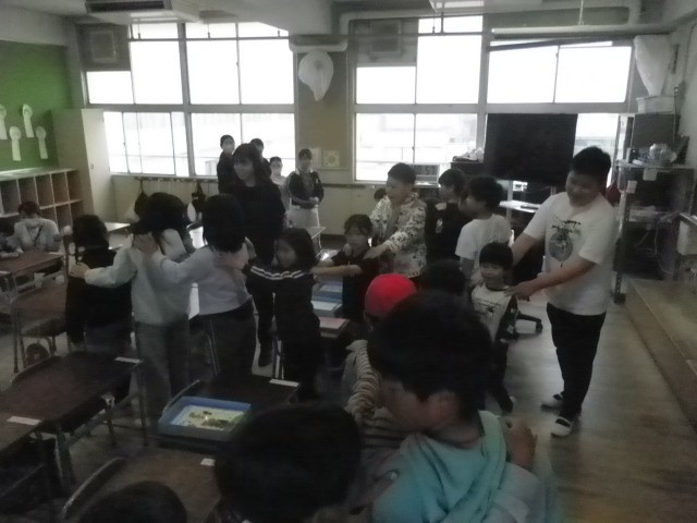 今朝は、たてわり班活動がありました。雨が降っていたので、体育館・講堂・教室での活動となりました。6年生の指示や説明のもと、「だるまさんがころんだ」や「鬼ごっこ」、「じゃんけん列車」など、各班で工夫をこらして活動し、楽しい時間を過ごしました。