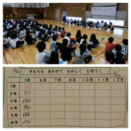 5月9日(木)の児童集会は、今年度初めてのなわとび集会です。