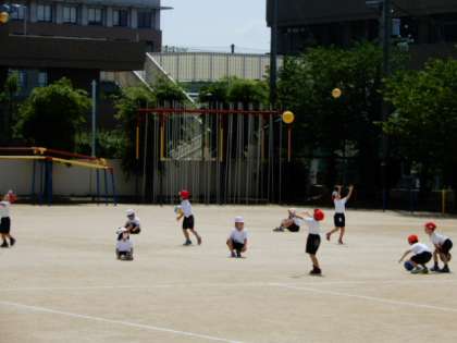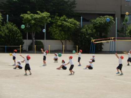 5月16日(木)1年は、体育でボール投げあそびをしました。