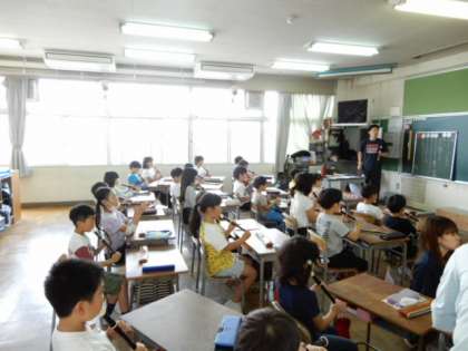 また、3年生は音楽科でリコーダーをリズムよく吹く練習をしていました。