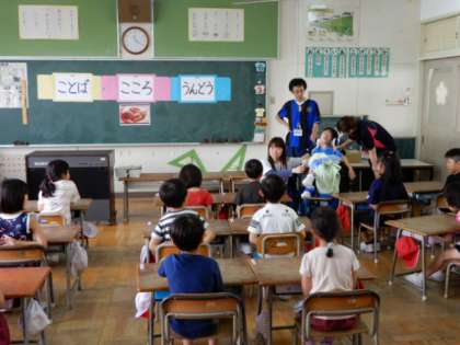 本校の特別支援コーディネーターが1年生に、同じ矢田北小学校で生活するお友だちのことを正しく理解して、接してほしいという願いから障がい者理解教育を行いました。