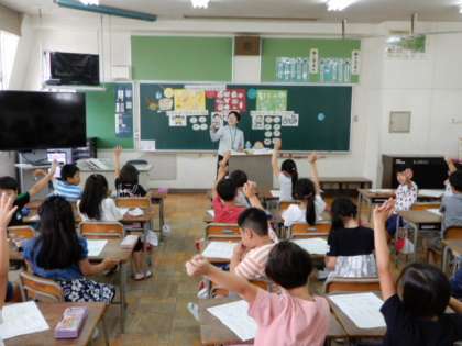 6月11日(火)2年生は、5時限目に南百済小学校の栄養教諭の先生に来ていただき、赤・黄・みどりの食べものについて、学習しました。