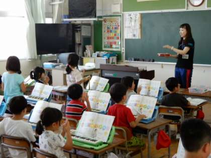 6月24日(月)1年は、音楽で「ぶんぶんぶん」のメロディーに合わせてタンバリンでリズム打ちをしていました。