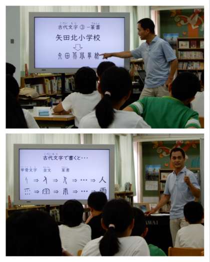 5年生と6年生は、日本漢字検定を受検するために、漢字教育サポーターの方に来ていただいて漢字の成り立ちと漢字検定を受けるに当たってのポイントについて教えていただきました。