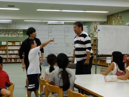 今回は、合同で中国や韓国・朝鮮、フィリビンなどの国々の文化や名跡などを題材にしたクイズをしたり、中国語でジャンケンをしてあっち向いてホイで対戦したり、韓国・朝鮮のおはしで碁石をつまんでコップに移すゲームをチーム対抗にして楽しみました。