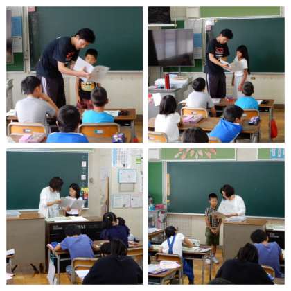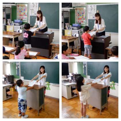 終業式のあとは、各教室にもどって担任から通知表をもらいました。