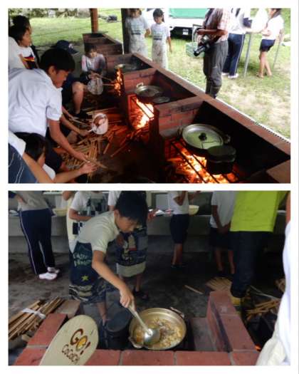 グループごとに野菜切りやかまどの火の番などを担当し、どの班も美味しいカレーライスが出来上がりました。