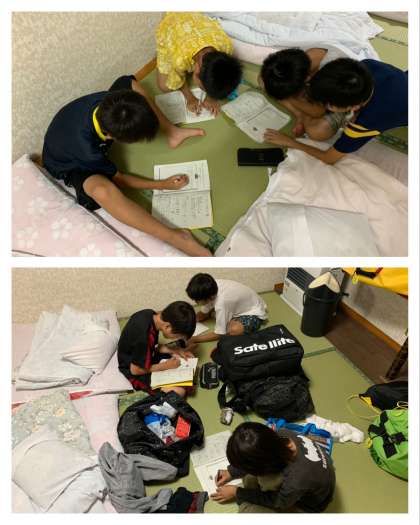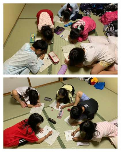 その後、宿舎に帰って、しおりに今日の振り返りを書いて、今日の行事は全て終了しました。