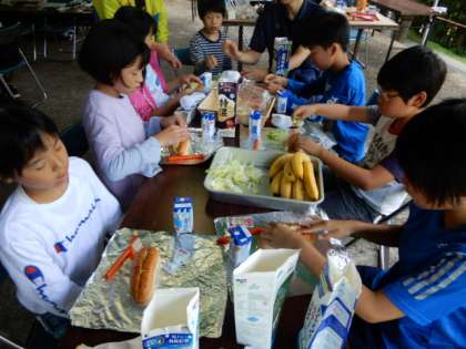 3日目の朝食は、カートンドック作りをしました。少し焦げてしまったカートンドックもありましたが、美味しくいただきました。
