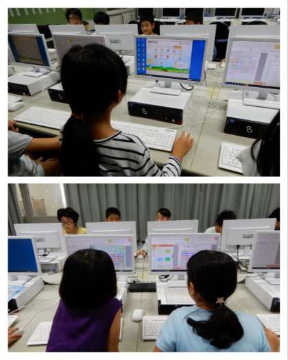 8月27日(火)、4年生、5年生はパソコンで2学期の時間割をつくりました。