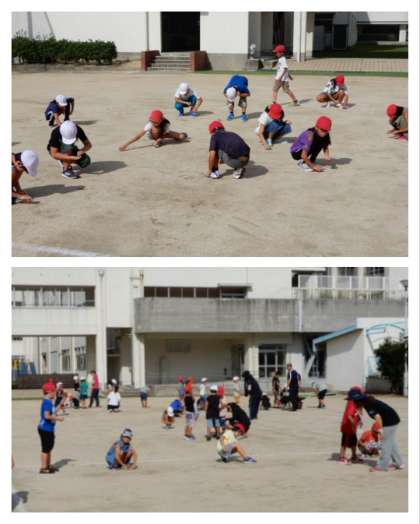 9月2日(月)全校朝会が終わったあと、引き続き、運動場の石拾いをしました。