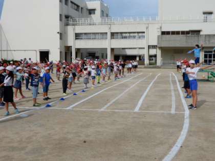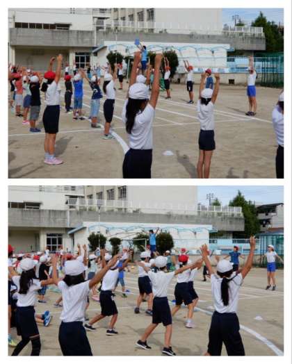 9月5日(木)の児童朝会の時間に、ラジオ体操の練習を行いました。
