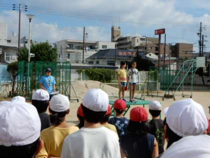 9月9日(月)の朝会では、児童会から今年の運動会のスローガンが発表されました。