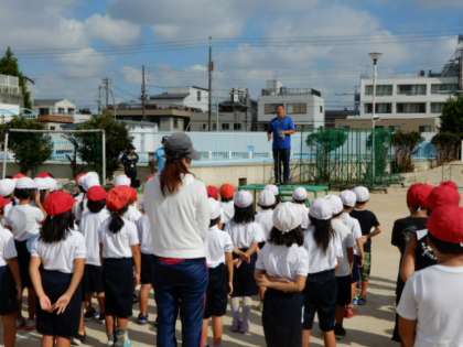 朝会後には、運動会の練習で怪我をしないように2回目の運動場の石拾いをしました。