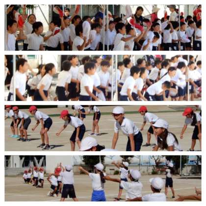 9月25日(水)運動会の2回目の全体練習は、全校競技「みんなでころがせゴーロゴーロ」の練習と応援合戦の練習をしました。