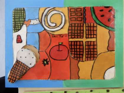絵の輪郭に沿って糸のこで切って、ニスを塗ってパズルの完成です。