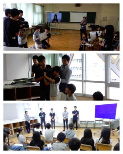 そして後半は、レポーターやカメラマン、フロアーディレクターなどの役割を実際の機材を使って体験させていただきました。