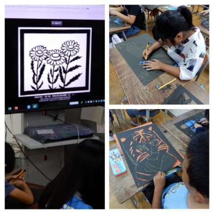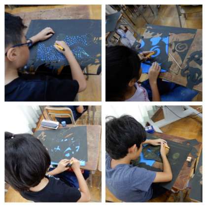 4年生は、図画工作科の学習で、切り絵をしていました。