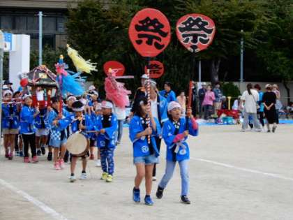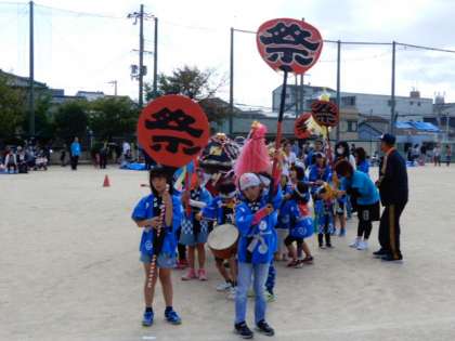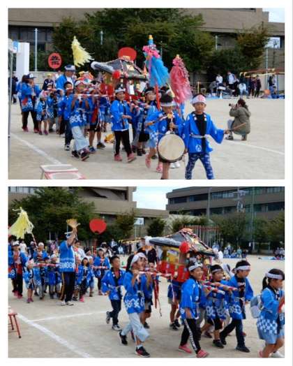 揃いのハッピを着て、わっしょい、わっしょいのかけ声を出しながら、運動場を神輿をかついで回りました。