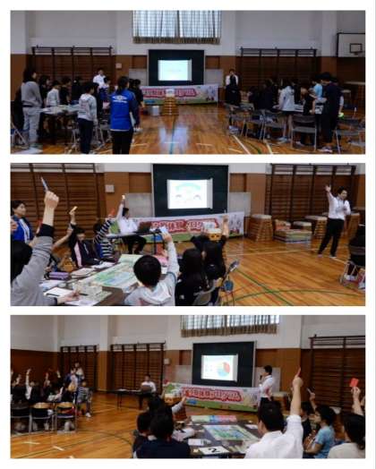 10月15日(火)5年は、トヨタ自動車の方に来ていただき、「クルマと環境」についてクイズやすごろくゲームをしながら楽しく学習しました。