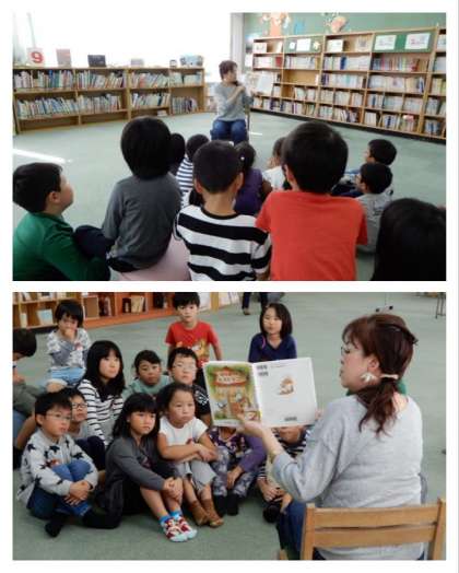 10月16日(水)の20分休けいは、図書館でボランティアの方による絵本の読み聞かせがありました。