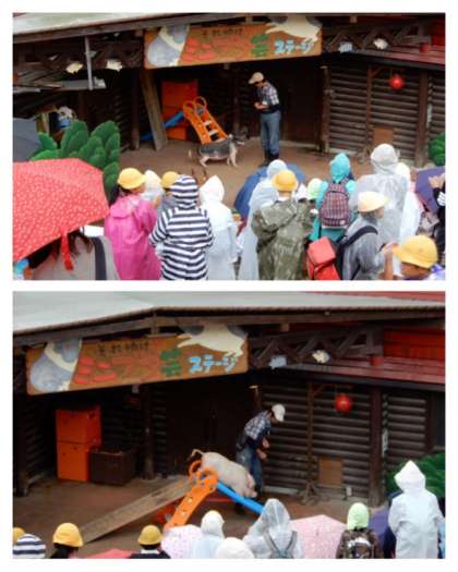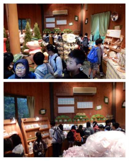 手作り体験が終わったあとは、お土産タイム、ミニ豚ショーを見たあと、昼食です。